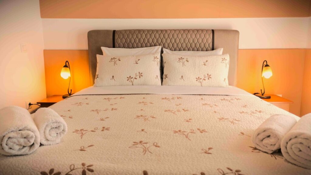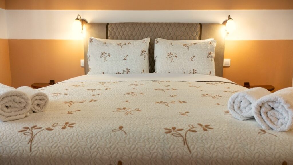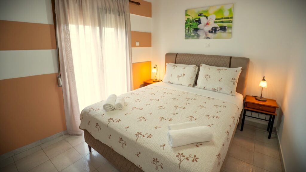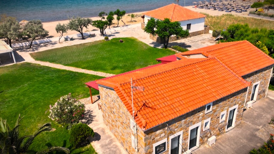The Sea Building is almost right on the water, just 50m from the sea. In front of the rooms, there is a grassy area with cool, shady trees right before the sandy beach.